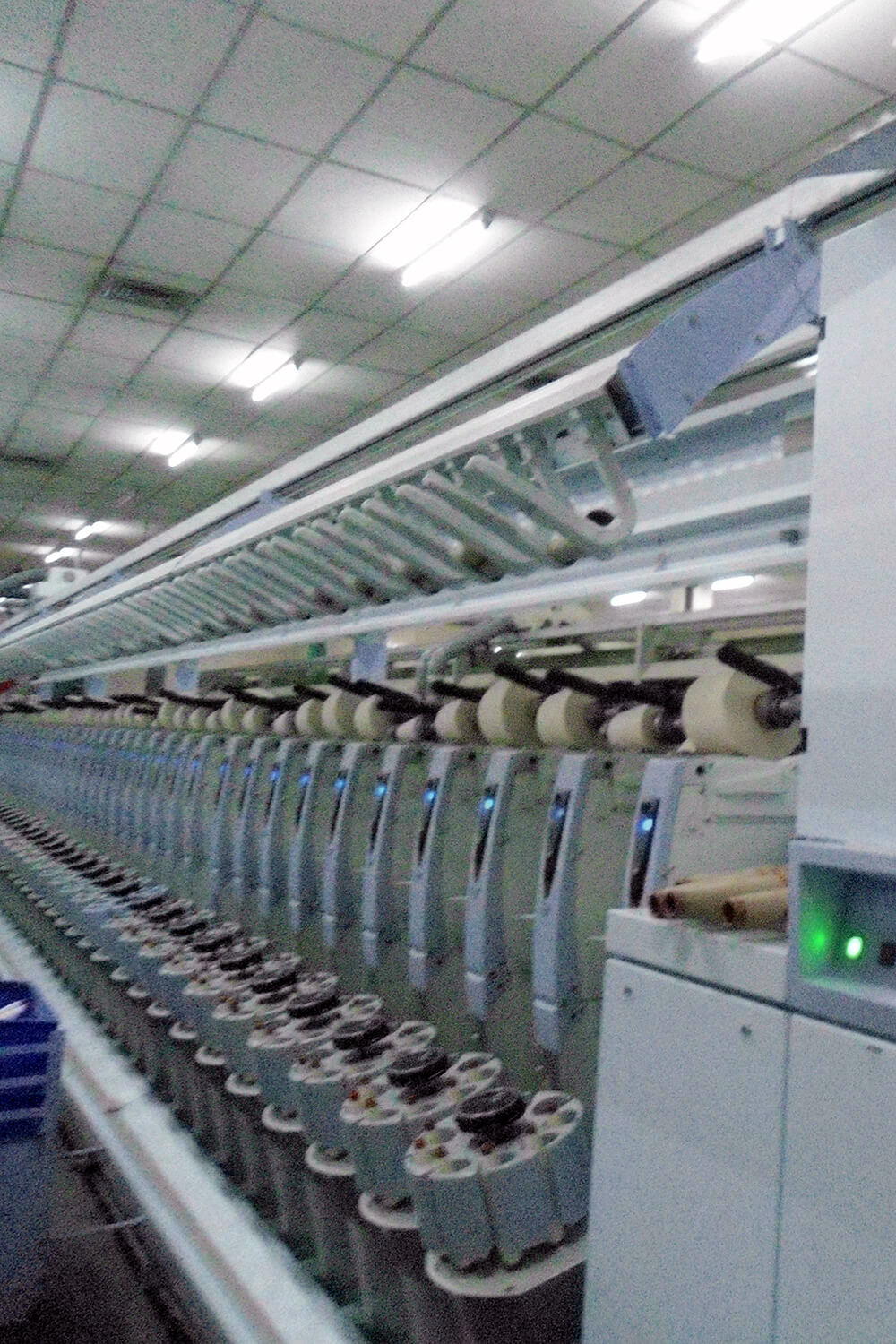 インドもしくはタンザニアで収穫されたbioRe COTTONの原綿はこの紡績工場に運ばれて糸になります。インド中央に位置するこの工場はGOTS(Global Organic Textile Standard)認定工場で、bioReの原糸を製造する際には他の原綿の混入を防ぐために厳密なロット管理が徹底されています。